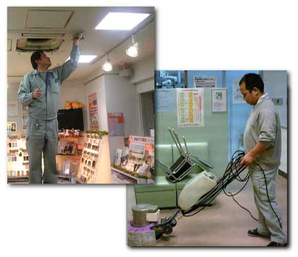 外壁、床、じゅうたん、窓ガラスその他、様々なデイリー清掃業務にプロの技術と